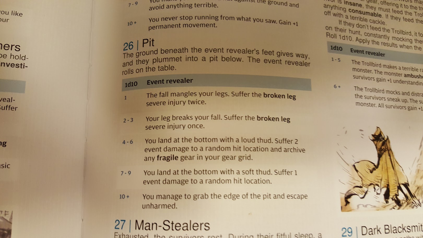 As we’re in the Hunt Phase, she rolls on the Triumph table. A 2 nets her a +1 Speed Token for the upcoming showdown, and the Prepared ability. To recap, Speed is not the same as Movement. Speed refers to how fast you are with a weapon, or rather, how many attacks you can make with a single “Action”. 2 Speed, the norm for most of the weapons carried by the party, means you roll 2 dice on the attack. With +1 Speed, Jennissa would now be rolling 3 dice. An extra chance to hit, and potentially wound.