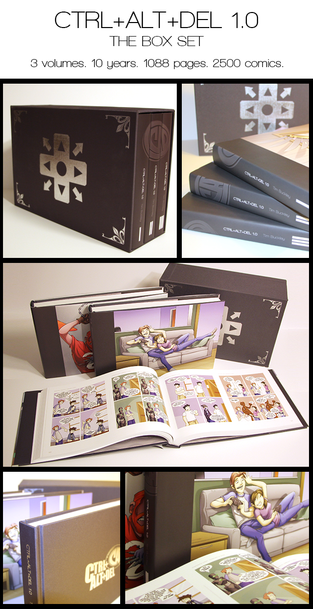 The price on the Ctrl+Alt+Del 1.0 Box Set has been marked down to $60, the lowest it’s ever been. I can’t do much about the high shipping costs across the ocean (the set weighs 17lbs), but hopefully marking the cover price down helps make it a little more reasonable.