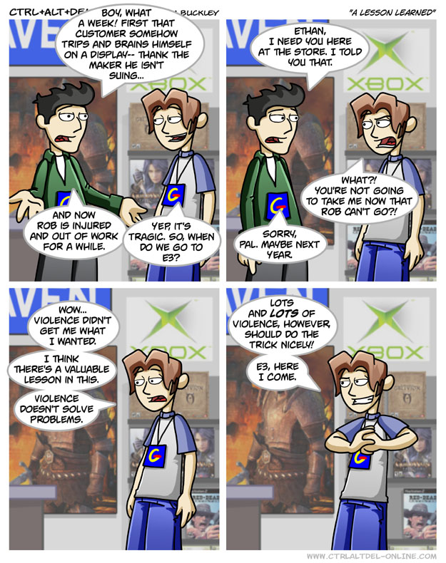 First Previous Random Next Last | 6 Share You are currently browsing the archive for Ctrl Alt Del First Previous Archive Random Next Last | 6 Share Tweet 24 A lesson learned May 6, 2006 by Tim Subscribe Notify of new follow-up comments new replies to my comments Label {} [+] Name* Email* Δ Label {} [+] Name* Email* Δ 6 Comments Oldest Newest Most Voted Inline Feedbacks View all comments MidnightDStroyer 7 years ago There’s no such thing as overkill because there IS such a thing as underkill. Arceus 7 years ago Reply to MidnightDStroyer Please Note: There is no way to make someone deader than they already are when killed. All you are doing is desecrating a body at that point. douglas 5 years ago Reply to Arceus mmm… desecration Omni 5 years ago Reply to MidnightDStroyer “Dere is no such t’ing as too-much-dakka. If such a t’ing as enough-dakka existed, adding more to it woul’ be too-much. Derefore dere is no such t’ing as enough-dakka! Pile it on, boyz!” Richard Weatherfield 3 years ago Reply to Omni I once said to one of my GMs that I wanted to play an Ork in Warhammer that kept declaring he had enuff Dakka. Dragamuffin 2 years ago Hey I didn’t know you were from Centauri Prime.