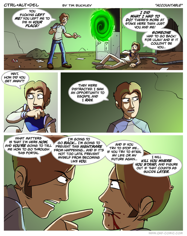 First Previous Random Next Last | 2 Share You are currently browsing the archive for Ctrl Alt Del First Previous Archive Random Next Last | 2 Share Tweet 24 Accountable November 12, 2012 by Tim Subscribe Notify of new follow-up comments new replies to my comments Label {} [+] Name* Email* Δ Label {} [+] Name* Email* Δ 2 Comments Oldest Newest Most Voted Inline Feedbacks View all comments Static Crowbar 5 years ago Hell yeah! Hit him again, Past Ethan! Verycool 1 year ago If its suicide fo your future self then it could be like suikill or something