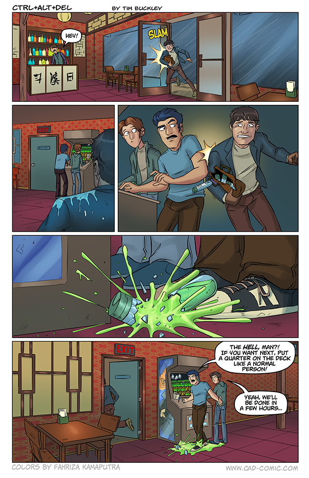 First Previous Random Next Last | 5 Share You are currently browsing the archive for Analog and D-Pad First Previous Archive Random Next Last | 5 Share Tweet 24 Analog and D-Pad 04.06 June 5, 2016 by Tim Subscribe Notify of new follow-up comments new replies to my comments Label {} [+] Name* Email* Δ Label {} [+] Name* Email* Δ 5 Comments Oldest Newest Most Voted Inline Feedbacks View all comments Hamstermer 8 years ago Pay no attention the the green goop. Arc 7 years ago I thought there was going to be lightning. Richard 7 years ago Did anyone else notice that the screen cap on the arcade cabinet is actually the first level of Contra? Steve 2 years ago Reply to Richard Maybe that’s what Contra was named in this universe? Richard II Weatherfield 5 years ago That screenshot is from Contra.