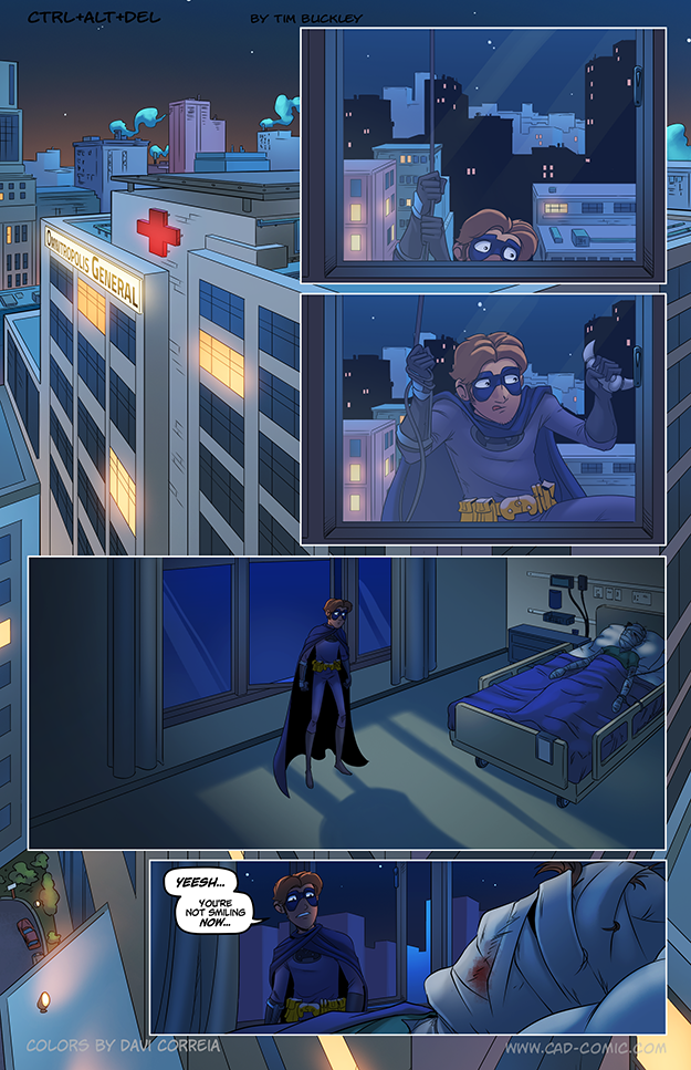 I mean, come on, you don’t just fall into a truck full of chemicals and survive only to just live crippled for the rest of your life and eat Jello. Not in SuperHeroesburg. Ethan, I know you feel cruddy about it, but ten to one he’s going to develop some crazy superpower and jet around the city like a demigod. He might even thank you for it.