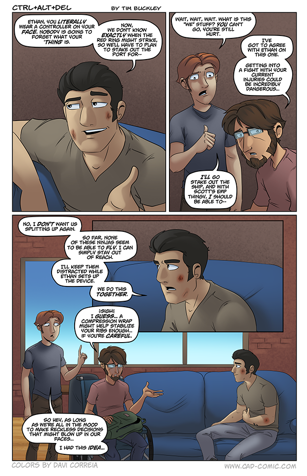 Jetpacks and rocket boots are only impractical and dangerous if you are squishy and not made of metal/plastic/composites. Also, Ethan has an idea and is clearly aware of the potential consequences? THIS CAN’T END BADLY but I can’t wait to see what madness he has in mind.