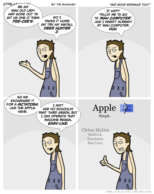 First Previous Random Next Last | 3 Share You are currently browsing the archive for Ctrl Alt Del First Previous Archive Random Next Last | 3 Share Tweet 24 And good riddance too! November 26, 2002 by Tim Subscribe Notify of new follow-up comments new replies to my comments Label {} [+] Name* Email* Δ Label {} [+] Name* Email* Δ 3 Comments Oldest Newest Most Voted Inline Feedbacks View all comments Niearos 6 years ago Approved. Also, Holy crashing market value Batman…… BloodLehmus 3 years ago Oooh, so that’s why I never got along with Mac… Too easy! Jimmy 3 years ago Notice how he doesn’t mention gaming on the mac. Wonder why….?