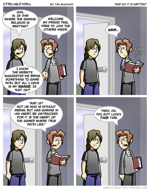 First Previous Random Next Last | 2 Share You are currently browsing the archive for Ctrl Alt Del First Previous Archive Random Next Last | 2 Share Tweet 24 And so it is written June 27, 2007 by Tim Subscribe Notify of new follow-up comments new replies to my comments Label {} [+] Name* Email* Δ Label {} [+] Name* Email* Δ 2 Comments Oldest Newest Most Voted Inline Feedbacks View all comments Kazzie 2 years ago These days, an NGage would be some obscure holy relic that some sects insist never existed. mason 19 days ago wow, ethan must’ve actually did get a vision from the gaming gods if he wrote something so un-ethanlike down without questioning or remembering it.