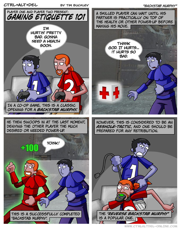 First Previous Random Next Last | 1 Share You are currently browsing the archive for Ctrl Alt Del First Previous Archive Random Next Last | 1 Share Tweet 24 Backstab murphy May 19, 2004 by Tim Subscribe Notify of new follow-up comments new replies to my comments Label {} [+] Name* Email* Δ Label {} [+] Name* Email* Δ 1 Comment Oldest Newest Most Voted Inline Feedbacks View all comments Caroniver 7 years ago Ah, the first appearance of players 1 and 2, later the main charactersl