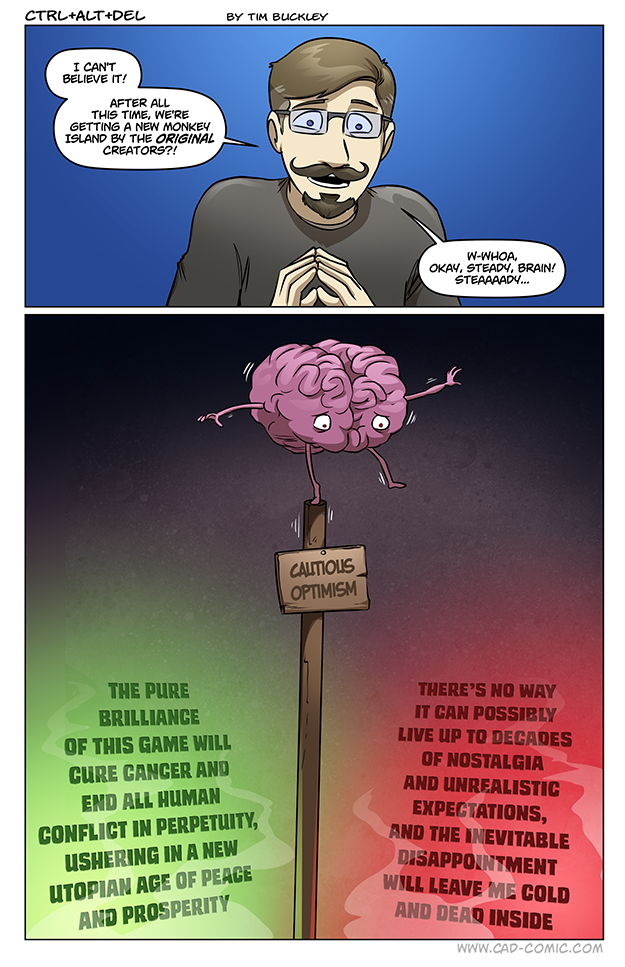 I have some very fond childhood memories of the first Monkey Island, and that sort of thing can very easily lend itself to an over-abundance of hype. The idea that “Yes, we’re finally getting more of that thing I loved!”