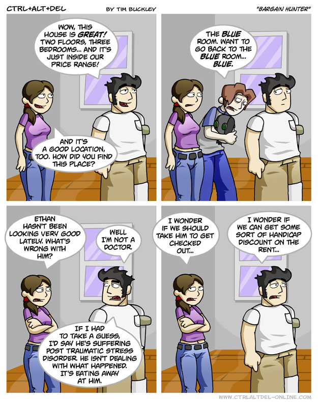 First Previous Random Next Last | 3 Share You are currently browsing the archive for Ctrl Alt Del First Previous Archive Random Next Last | 3 Share Tweet 24 Bargain hunter August 31, 2005 by Tim Subscribe Notify of new follow-up comments new replies to my comments Label {} [+] Name* Email* Δ Label {} [+] Name* Email* Δ 3 Comments Oldest Newest Most Voted Inline Feedbacks View all comments MidnightDStroyer 7 years ago Er, I’m not a professional, but would Ethan be considered psychotic or neurotic? HelloThere 7 years ago Reply to MidnightDStroyer Yes ACK! 4 years ago Mention it to the landlord and your security deposit will triple.