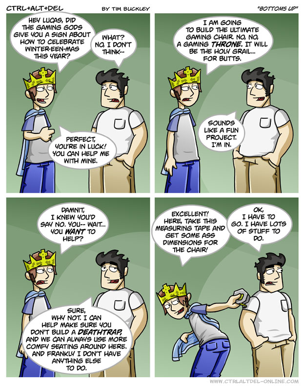 First Previous Random Next Last | 5 Share You are currently browsing the archive for Ctrl Alt Del First Previous Archive Random Next Last | 5 Share Tweet 24 Bottoms up January 5, 2007 by Tim Subscribe Notify of new follow-up comments new replies to my comments Label {} [+] Name* Email* Δ Label {} [+] Name* Email* Δ 5 Comments Oldest Newest Most Voted Inline Feedbacks View all comments MidnightDStroyer 7 years ago Lillah might be willing to do this part. Somewhere 7 years ago Reply to MidnightDStroyer You’d be surprised… GUNnibal 4 years ago Reply to MidnightDStroyer Nah, she already knows Reaper 5 years ago The Gaming Throne, The Holy Grail… For Butts! R.I.P. My Lungs! That one n00b 1 year ago The Throne of Games, the song of Fire and Ice.