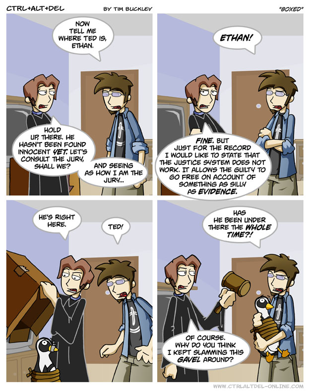 First Previous Random Next Last | 1 Share You are currently browsing the archive for Ctrl Alt Del First Previous Archive Random Next Last | 1 Share Tweet 24 Boxed June 12, 2004 by Tim Subscribe Notify of new follow-up comments new replies to my comments Label {} [+] Name* Email* Δ Label {} [+] Name* Email* Δ 1 Comment Oldest Newest Most Voted Inline Feedbacks View all comments Kaz 4 years ago Poor Ted
