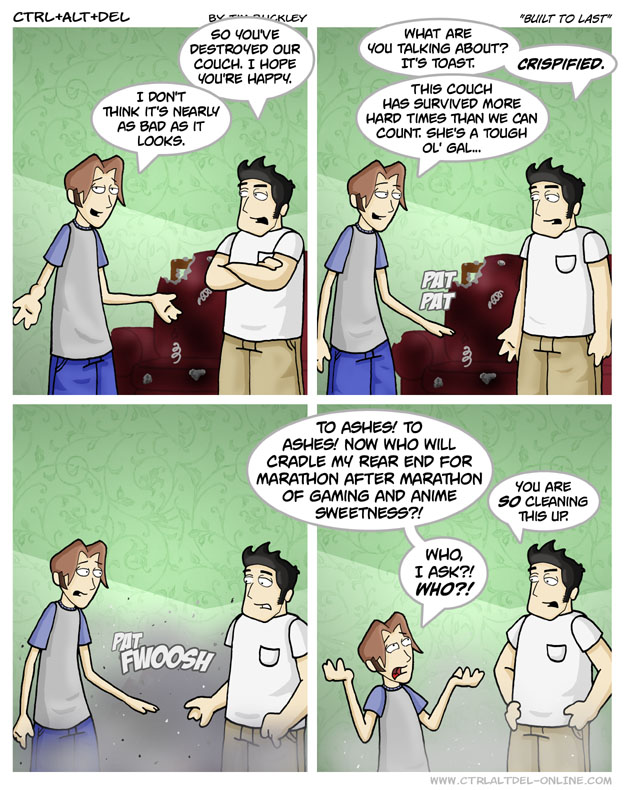 First Previous Random Next Last | 2 Share You are currently browsing the archive for Ctrl Alt Del First Previous Archive Random Next Last | 2 Share Tweet 24 Built to last July 23, 2003 by Tim Subscribe Notify of new follow-up comments new replies to my comments Label {} [+] Name* Email* Δ Label {} [+] Name* Email* Δ 2 Comments Oldest Newest Most Voted Inline Feedbacks View all comments Dylan 7 years ago “Ethan I don’t feel so good” ~ Couch but in 2018 douglas 5 years ago nice to know ethan’s a weeb… nice