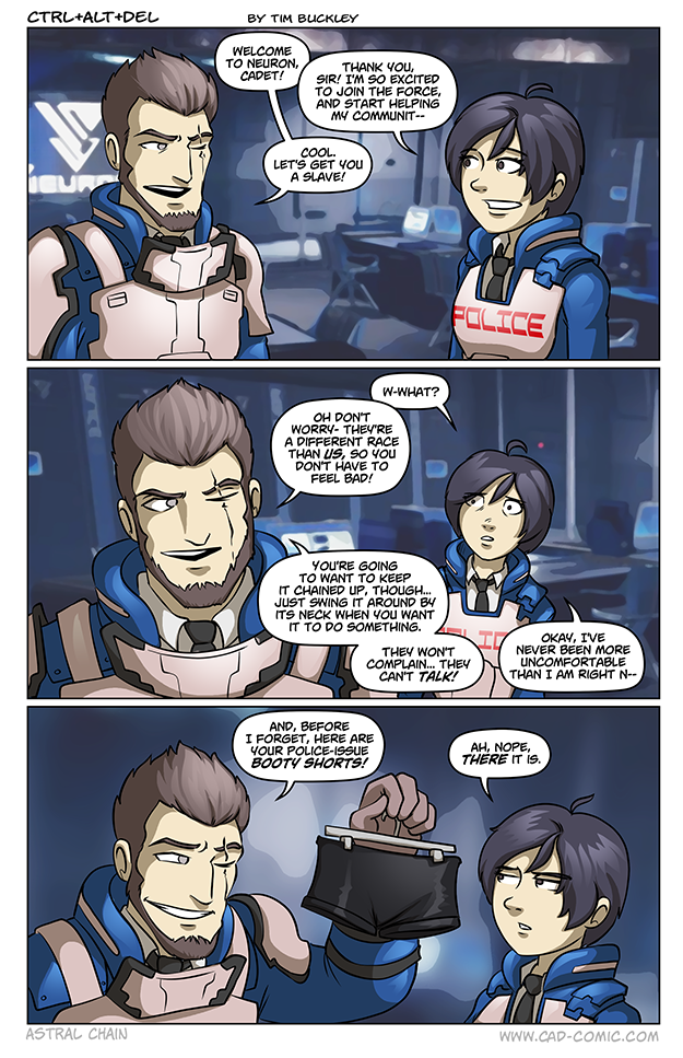 It’s hardly “woke” these days to be leery of sexism, but you’re right, Japan has a ways to go in it’s representation of women and media in video games, if that’s what you’re saying? And if you’re comfortable wearing booty shorts, that’s cool. Making it the mandatory uniform of a female cadet, is just cringey (my knowledge of this game is limited to this comic, I don’t know the extent of how mandatory the clothing item is), and calls to the more common western (but still common in Japan) trope of women wearing bikini armor. Edit: And the chain/slave thing… Read more »