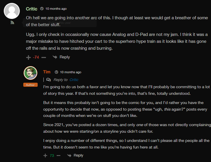 L take, the D pad and analog comics are easily the best of CAD right now. Why are you even here if you don’t enjoy literally the primary story of this website.