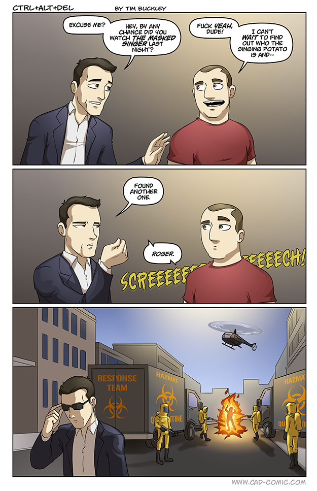 You could literally say this about every single thing we do for fun, including video games, and — oh hey — reading webcomics. Though yes, you are correct on your three doom points, but if you are so serious about “hey, why do we care about a masked singer?”, then I must ask you, “hey, why do you care about a webcomic?” As much as I love this webcomic, it is by no means any less frivolous than the Masked Singer.