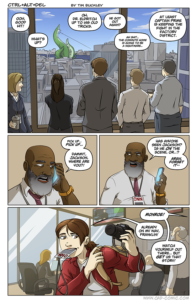 Although not much is happening in it, I love that first panel! Very rarely do we get to see the reaction of regular people in a city accustomed to “super” battles!