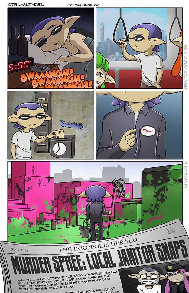 I did quite a bit of research on the first game in the course of exploring a few Splatoon-related comic ideas. I read Scrolls, Wikis and forums regarding the inkling’s culture, history and biology. The longevity of the ink was not a topic that came up.