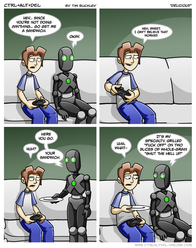 First Previous Random Next Last | 6 Share You are currently browsing the archive for Ctrl Alt Del First Previous Archive Random Next Last | 6 Share Tweet 24 Delicious March 2, 2009 by Tim Subscribe Notify of new follow-up comments new replies to my comments Label {} [+] Name* Email* Δ Label {} [+] Name* Email* Δ 6 Comments Oldest Newest Most Voted Inline Feedbacks View all comments MidnightDStroyer 7 years ago It tastes a little bit sour… Arceus 7 years ago Reply to MidnightDStroyer Mine tastes a bit salty BlookyGhostDJ 4 years ago Reply to Arceus *MMM salT Kazzie 2 years ago Ethan forgot to say “sudo” That one n00b 1 year ago Reply to Kazzie Well, yeah, Scot’s the Linux guy, not Ethan. Lad 1 month ago Reply to That one n00b Plus, i doubt that Zeke runs Linux anyway.