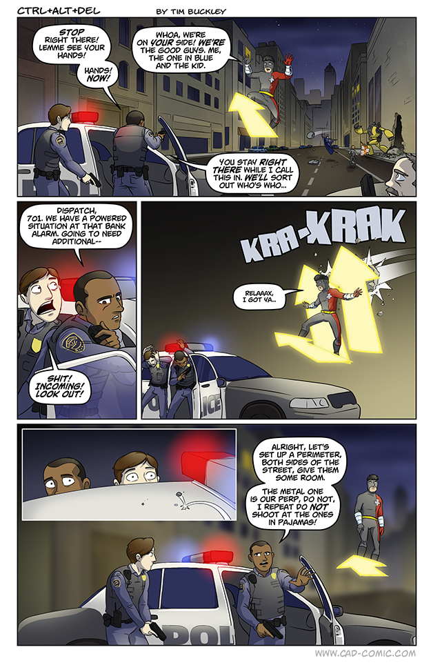 In a world of super villains and heros, you’d think the police would have some sort of registration system set up for heros. Makes you wonder of the police have some supers of their own.