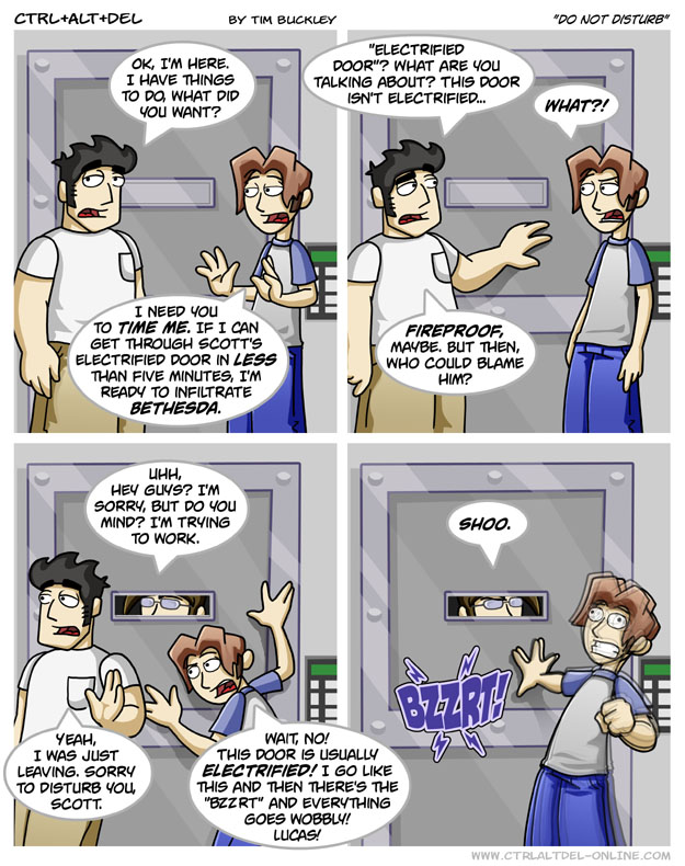 First Previous Random Next Last | 2 Share You are currently browsing the archive for Ctrl Alt Del First Previous Archive Random Next Last | 2 Share Tweet 24 Do not disturb March 3, 2006 by Tim Subscribe Notify of new follow-up comments new replies to my comments Label {} [+] Name* Email* Δ Label {} [+] Name* Email* Δ 2 Comments Oldest Newest Most Voted Inline Feedbacks View all comments MidnightDStroyer 7 years ago You know, most guys learn better after the *first* time they piss on an electric fence… Arceus 7 years ago Reply to MidnightDStroyer But damn is it not entertaining to watch as it happens?