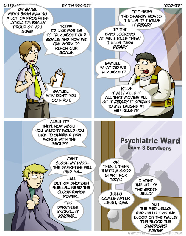 First Previous Random Next Last | 1 Share You are currently browsing the archive for Ctrl Alt Del First Previous Archive Random Next Last | 1 Share Tweet 24 Doomed August 6, 2004 by Tim Subscribe Notify of new follow-up comments new replies to my comments Label {} [+] Name* Email* Δ Label {} [+] Name* Email* Δ 1 Comment Oldest Newest Most Voted Inline Feedbacks View all comments MidnightDStroyer 7 years ago The entrails, dangling from everywhere. Bloody writing on the wall. Ritual sacrifices. Please be gentle with me…I been through hell & back. Literally.