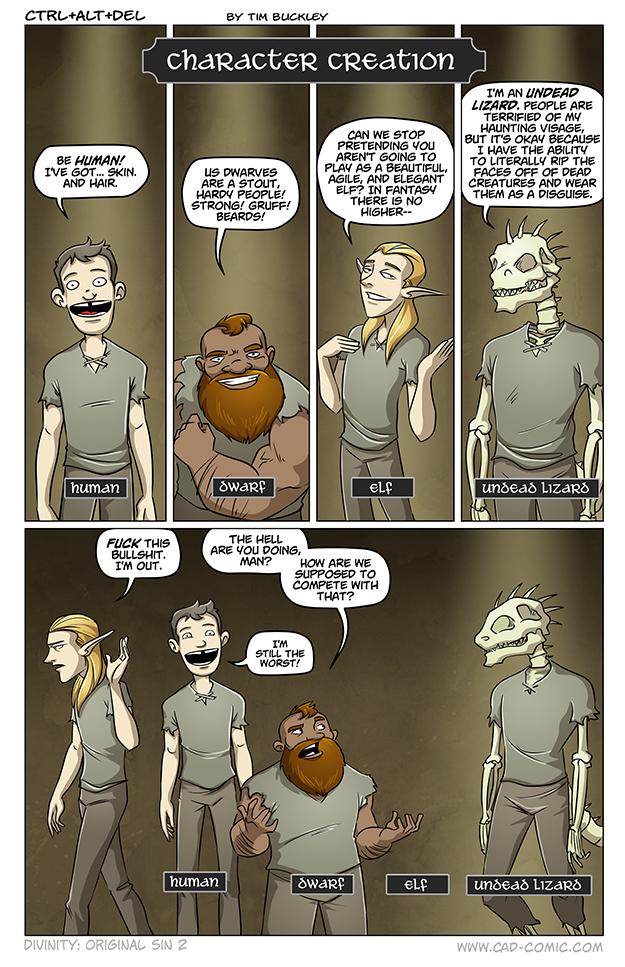 I just took a look at Divinity Original Sin 2… just four races, and undead versions of each? You guys forgot the Khajiit, and orcs, and werewolves, man. And only one type of elf? Booo.
