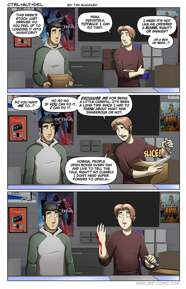 I was about to say… Accidents with knices and boxes happens pretty often for normal people too…