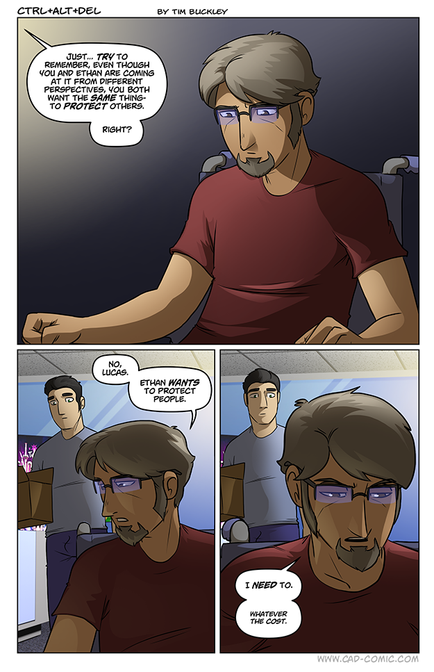 A couple of months ago he addressed this. That even if he accepts that Zeke is sentient AND can learn to not be homicidal, that he’s still just as dangerous. Because as soon as word gets out that a fully autonomous android has been developed, every government and super-villain in the world will hunt him down so they can mass-produce him. And at that point, the world is screwed. Best case we get armies of disposable soldiers/henchmen running all over the world. Worst case we get SkyNet.
