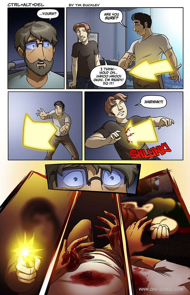 Yeah, this is often a silly comic with plenty of weird/fun moments – I mean c/mon it’s guys with video-game powers and an xbox robot – but it can similarly switch to “dark” with serious moments or topics like this. Maybe in this case an extra panel would be helpful where they basically tell him “this is going to be shocking, but wait for 2 minutes and don’t freak out”. On an unrelated takeway, I’m wondering how the “respawn” ability corresponds to time. We’ve seen that Ethan can be pretty beaten up and his solution is to force a respawn… Read more »
