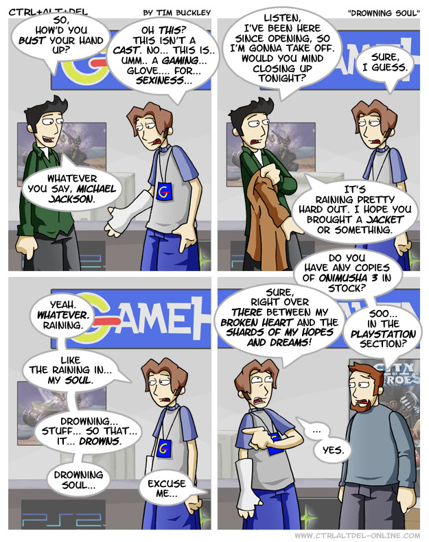 First Previous Random Next Last | 3 Share You are currently browsing the archive for Ctrl Alt Del First Previous Archive Random Next Last | 3 Share Tweet 24 Drowning soul May 8, 2004 by Tim Subscribe Notify of new follow-up comments new replies to my comments Label {} [+] Name* Email* Δ Label {} [+] Name* Email* Δ 3 Comments Oldest Newest Most Voted Inline Feedbacks View all comments Hamstermer 8 years ago It’s the next closest thing to being accurate. Dingle Bloopynoop 4 years ago ok Tim there is one question that I need answered before I die: WHY THE HELL DO YOU HATE PLAYSTATION SO MUCH?!!! Daniel 4 years ago Reply to Dingle Bloopynoop ‘Twas a different time. In ages long past, Sony wasn’t the dominant console of that generation. Hard to imagine, but true. I imagine the Microsoft empire was the dominant force of that time. That and the mighty PC!