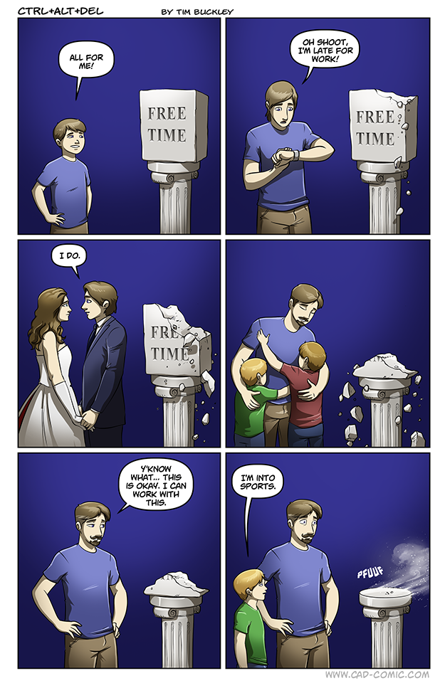 My sister has kids, one in sports and the other still too little. They have literally negative free time. Some how I have to spend my free time, watching their kid, just so they can keep up.