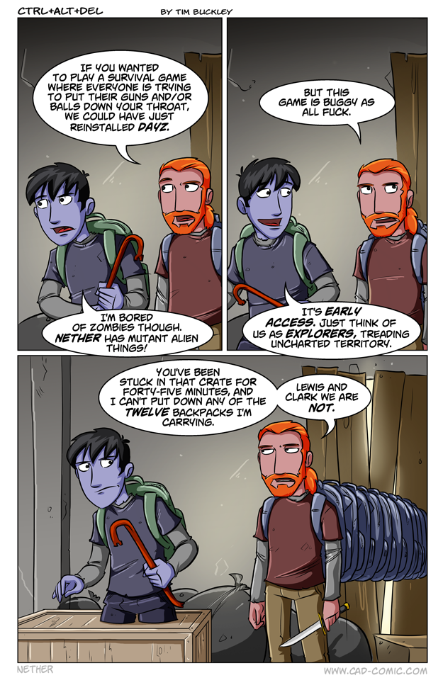 First Previous Random Next Last | 1 Share You are currently browsing the archive for Ctrl Alt Del First Previous Archive Random Next Last | 1 Share Tweet 24 Early access November 8, 2013 by Tim Subscribe Notify of new follow-up comments new replies to my comments Label {} [+] Name* Email* Δ Label {} [+] Name* Email* Δ 1 Comment Oldest Newest Most Voted Inline Feedbacks View all comments SilverXSnake 8 years ago Paving the way for adventure!