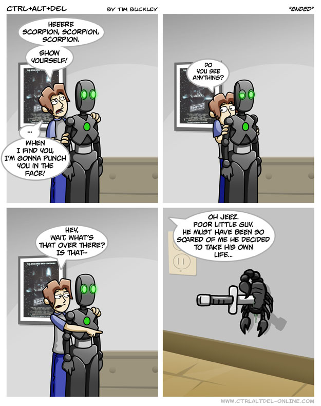 #1: Ethan, ask yourself how the scorpion could possibly commit suicide by backstabbing itself? Its limbs & joints just don’t work that way at all.