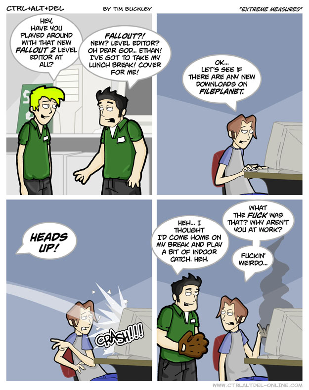 First Previous Random Next Last | 1 Share You are currently browsing the archive for Ctrl Alt Del First Previous Archive Random Next Last | 1 Share Tweet 24 Extreme measures April 16, 2003 by Tim Subscribe Notify of new follow-up comments new replies to my comments Label {} [+] Name* Email* Δ Label {} [+] Name* Email* Δ 1 Comment Oldest Newest Most Voted Inline Feedbacks View all comments Bogsalt 5 months ago Bro dyed his hair with a highlighter.