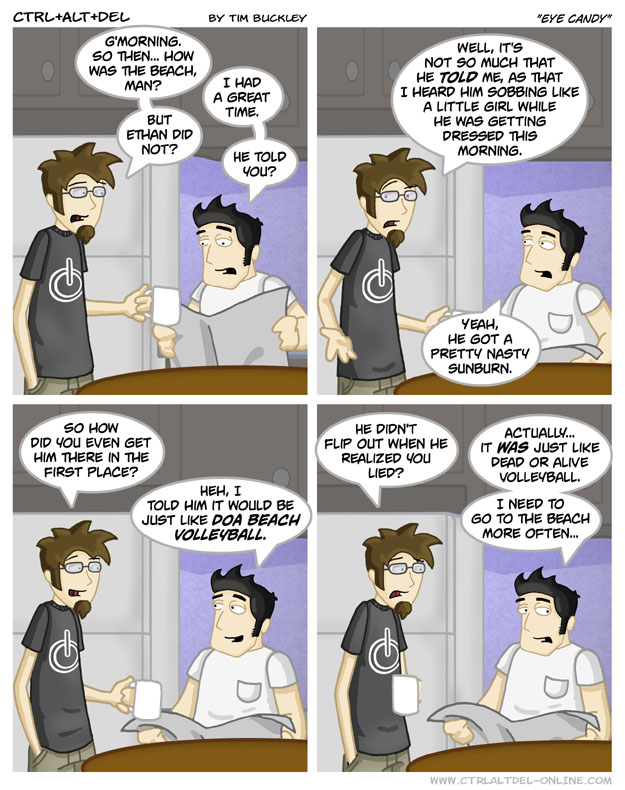 First Previous Random Next Last | 3 Share You are currently browsing the archive for Ctrl Alt Del First Previous Archive Random Next Last | 3 Share Tweet 24 Eye candy July 12, 2003 by Tim Subscribe Notify of new follow-up comments new replies to my comments Label {} [+] Name* Email* Δ Label {} [+] Name* Email* Δ 3 Comments Oldest Newest Most Voted Inline Feedbacks View all comments Member Saixak 3 years ago That time Tim experimented with a different art style. Nostalgia. princessrosalina 4 months ago scott with eyes is so creepy jerrey 2 months ago Reply to princessrosalina no, hes beautiful