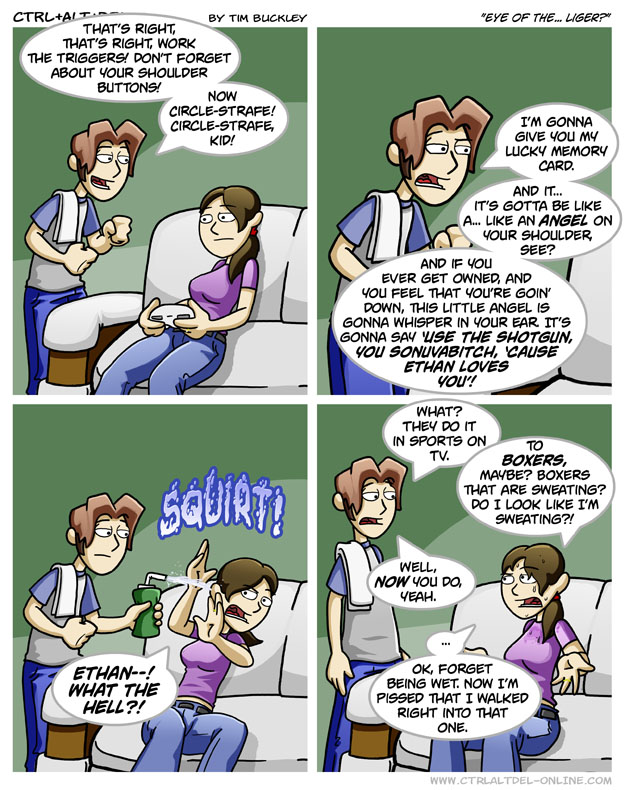 First Previous Random Next Last | 4 Share You are currently browsing the archive for Ctrl Alt Del First Previous Archive Random Next Last | 4 Share Tweet 24 Eye of the… liger? September 8, 2006 by Tim Subscribe Notify of new follow-up comments new replies to my comments Label {} [+] Name* Email* Δ Label {} [+] Name* Email* Δ 4 Comments Oldest Newest Most Voted Inline Feedbacks View all comments MidnightDStroyer 7 years ago I thought gals would like it when their guy can make them wet. *sigh* Okay, I’ll go let myself out now… Arceus 7 years ago Reply to MidnightDStroyer How many times have you let yourself out now? And how many times do I have to let you back in? TIM THE TAT MAN 4 years ago Reply to Arceus let me let him back in lol Taylor 4 years ago Wonder if his lucky memory card is the same one that’s lodged in his brain. I’d consider it lucky since it didn’t kill him.
