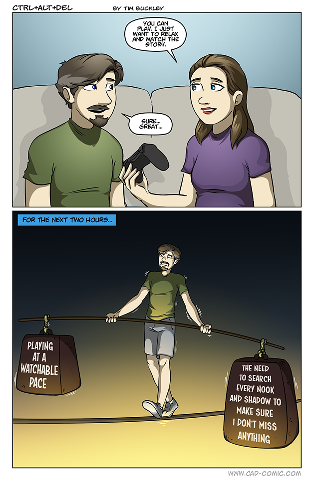 We need a comic about teaching a spouse that First Person/3D games dont need to make you motion sick.