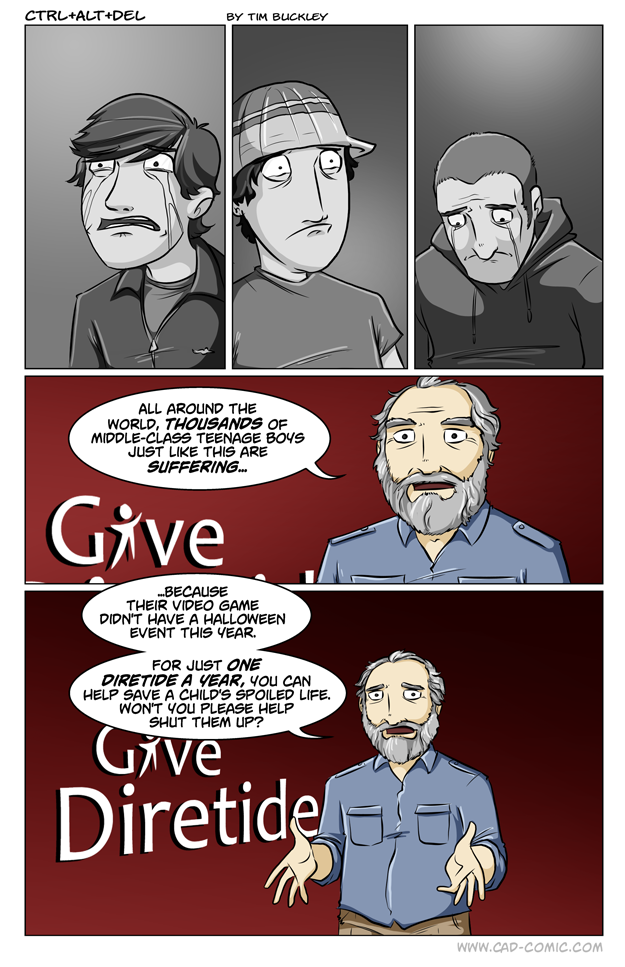 First Previous Random Next Last | 1 Share You are currently browsing the archive for Ctrl Alt Del First Previous Archive Random Next Last | 1 Share Tweet 24 First world problems November 4, 2013 by Tim Subscribe Notify of new follow-up comments new replies to my comments Label {} [+] Name* Email* Δ Label {} [+] Name* Email* Δ 1 Comment Oldest Newest Most Voted Inline Feedbacks View all comments Narnian 2 years ago Well, we can at least be thankful that they only miss out on a Halloween event. Winter-een-mas is safe!