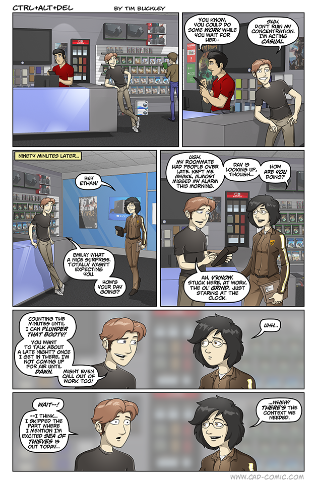 Actually it’s a fairly lengthy storyline that was supposed to pause at page 7 (Friday)… I thought I’d take a week to do some Sea of Thieves comics, and then pick up this thread again afterwards.