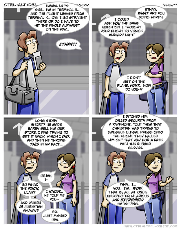 First Previous Random Next Last | 2 Share You are currently browsing the archive for Ctrl Alt Del First Previous Archive Random Next Last | 2 Share Tweet 24 Flight October 27, 2008 by Tim Subscribe Notify of new follow-up comments new replies to my comments Label {} [+] Name* Email* Δ Label {} [+] Name* Email* Δ 2 Comments Oldest Newest Most Voted Inline Feedbacks View all comments MidnightDStroyer 7 years ago Yes, yes it does Ethan. You hit the nail on the head there. I’ve just been through a dictionary & couldn’t find any other words that fit so perfectly. Drakin 7 years ago Reply to MidnightDStroyer You just need a to know a little of another language. One word in German to be precise. Schadenfreude. scha·den·freu·de noun “Pleasure derived by someone from another person’s misfortune.”