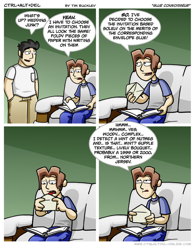 First Previous Random Next Last | 1 Share You are currently browsing the archive for Ctrl Alt Del First Previous Archive Random Next Last | 1 Share Tweet 24 Glue connoisseur February 13, 2008 by Tim Subscribe Notify of new follow-up comments new replies to my comments Label {} [+] Name* Email* Δ Label {} [+] Name* Email* Δ 1 Comment Oldest Newest Most Voted Inline Feedbacks View all comments MidnightDStroyer 7 years ago He’d hate to get a paper cut on his tongue. Blood really messes up the flavor.