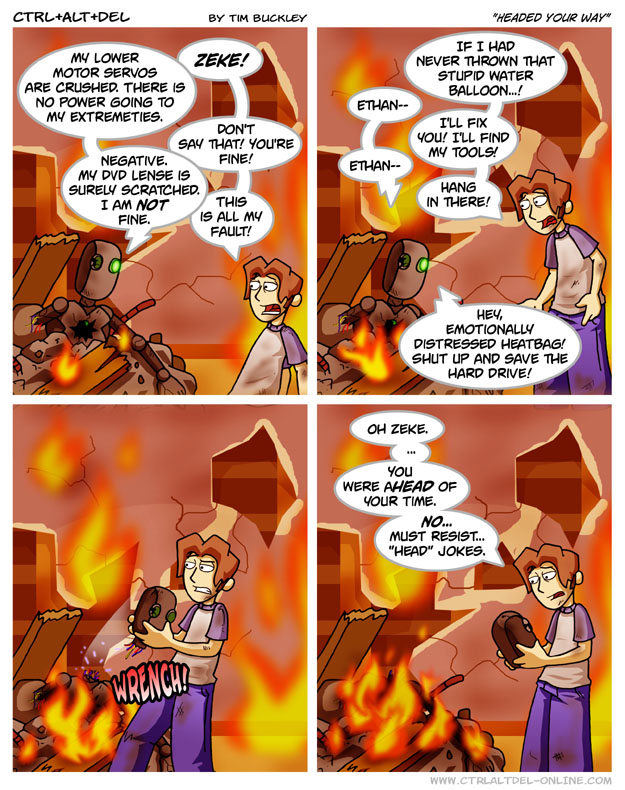 First Previous Random Next Last | 10 Share You are currently browsing the archive for Ctrl Alt Del First Previous Archive Random Next Last | 10 Share Tweet 24 Headed your way August 3, 2005 by Tim Subscribe Notify of new follow-up comments new replies to my comments Label {} [+] Name* Email* Δ Label {} [+] Name* Email* Δ 10 Comments Oldest Newest Most Voted Inline Feedbacks View all comments Hiatus 8 years ago his hard drive BETTER be in his head…. Hamstermer 7 years ago Reply to Hiatus It is; it equates to the brain human 2 years ago Reply to Hamstermer oh i thougt it was his “hard” drive That one n00b 1 year ago Reply to human Wrong โheadโ Hamstermer 7 years ago Oh great Zeke, thy time has run out. Soon thy shalt be but a pockmark upon the infinite abyss of this world, and… um… I’m out of fancy word stuff things BlookyGhostDJ 4 years ago Reply to Hamstermer Heh. Ben 6 years ago Losing your head in an emergency is a no brainer. Punny punny pun pun pun Reaper 5 years ago They better HEAD out before they die! ๐ douglas 5 years ago Reply to Reaper one more pun and you’ll be HEADing to hell Doctor Disaster 5 years ago Reply to douglas I’ll give you a HEAD start.