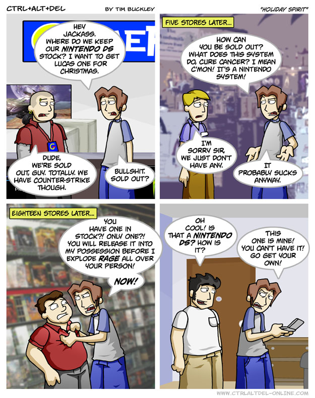 First Previous Random Next Last | 1 Share You are currently browsing the archive for Ctrl Alt Del First Previous Archive Random Next Last | 1 Share Tweet 24 Holiday spirit December 17, 2004 by Tim Subscribe Notify of new follow-up comments new replies to my comments Label {} [+] Name* Email* Δ Label {} [+] Name* Email* Δ 1 Comment Oldest Newest Most Voted Inline Feedbacks View all comments Maximum 3 years ago Oh yeah, the DS