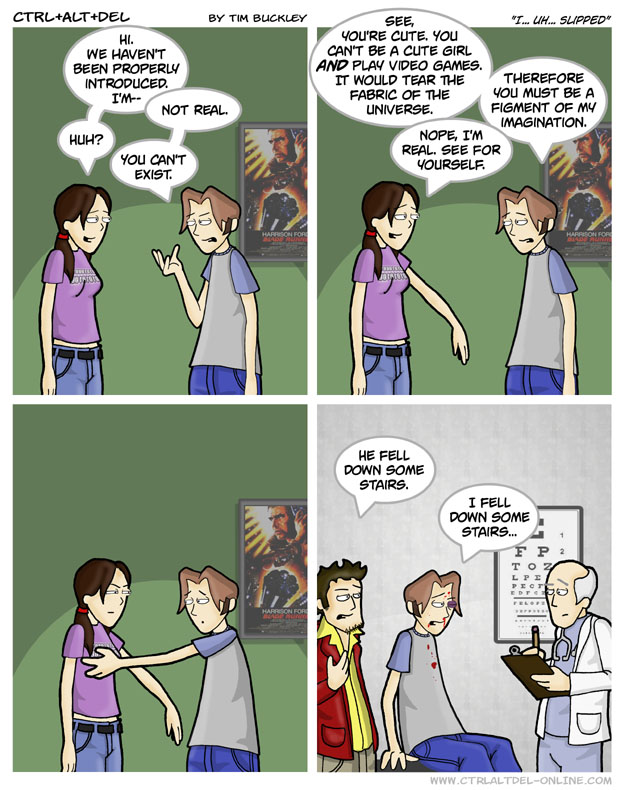 First Previous Random Next Last | 2 Share You are currently browsing the archive for Ctrl Alt Del First Previous Archive Random Next Last | 2 Share Tweet 24 I… uh… slipped January 15, 2003 by Tim Subscribe Notify of new follow-up comments new replies to my comments Label {} [+] Name* Email* Δ Label {} [+] Name* Email* Δ 2 Comments Oldest Newest Most Voted Inline Feedbacks View all comments Douglas Cannizzaro 7 months ago PEAK Fight Club reference princessrosalina 8 days ago i love lilahs stupid smirk😭😭❤️🩹❤️🩹