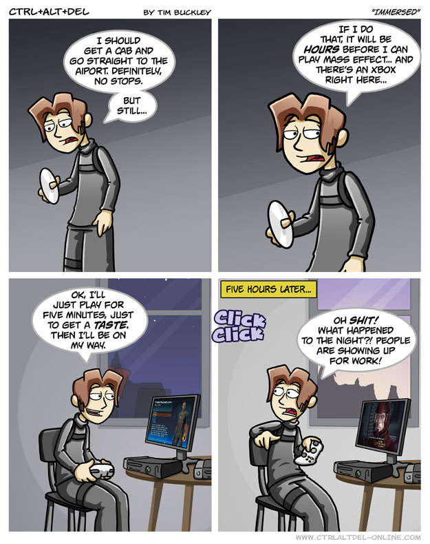 First Previous Random Next Last | 1 Share You are currently browsing the archive for Ctrl Alt Del First Previous Archive Random Next Last | 1 Share Tweet 24 Immersed October 10, 2007 by Tim Subscribe Notify of new follow-up comments new replies to my comments Label {} [+] Name* Email* Δ Label {} [+] Name* Email* Δ 1 Comment Oldest Newest Most Voted Inline Feedbacks View all comments Jimothy 5 years ago Love the Mass Effect Trilogy. Never did get why people didn’t like the ending of the 3rd game.