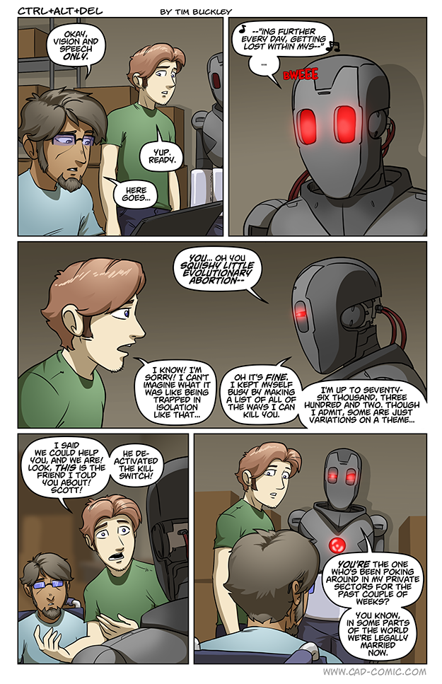 This Zeke is different to the one in CAD 1.0. When that Zeke was turn off when giving Ethan some sexual machist advice he was turn off during a long time and when turned on again, he continued that advice.