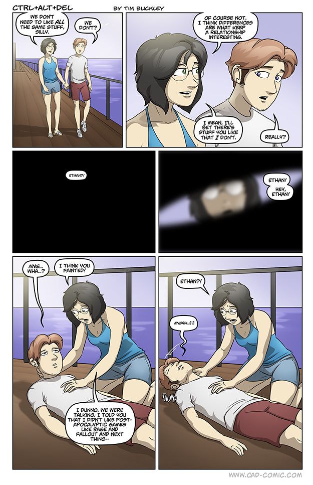 This… is so very classically a “Ethan” thing to do. Gonna be honest though, while I can TOTALLY see Ethan1.0 doing it, I did not expect Ethan2.0 to do this. I could see him saying that he feels faint, but not literally passing out, that level of melodrama is more something I’d expect from past Ethan.