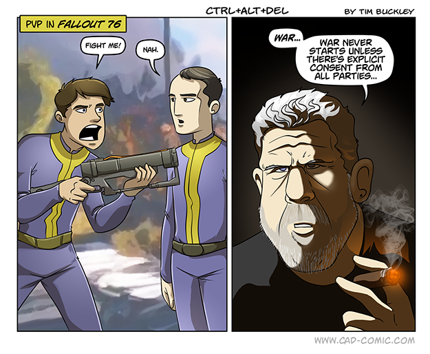 Somewhere: The only thing you lose when you die in regular PVP is whatever Junk (crafting resources) you are carrying. You do not lose gear or money. You lose caps if you’re a Wanted Murderer (ie, you killed someone who did not fight back). Just wanted to clarify the difference between that and “PVP” rewards. The system will not deter some people, obviously. They’ll want to be assholes no matter the cost. But this does turn having an asshole on your server into a gameplay element. And I think the downsides will give more casual assholes pause before they decide… Read more »