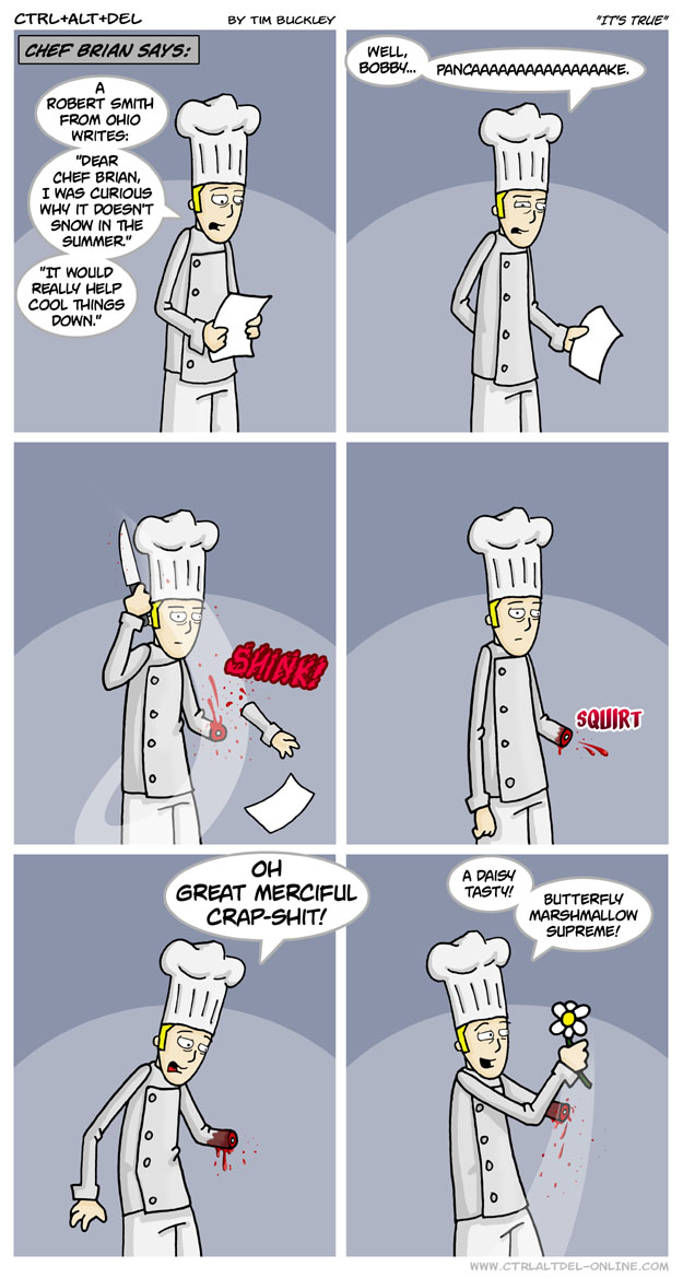 First Previous Random Next Last | 1 Share You are currently browsing the archive for Ctrl Alt Del First Previous Archive Random Next Last | 1 Share Tweet 24 It’s true June 14, 2003 by Tim Subscribe Notify of new follow-up comments new replies to my comments Label {} [+] Name* Email* Δ Label {} [+] Name* Email* Δ 1 Comment Oldest Newest Most Voted Inline Feedbacks View all comments UltraTheHedgeToaster 10 months ago Huh. A few decades too early for the “everything is secretly a cake” meme, I suppose. Would’ve made sense in this particular situation, though.