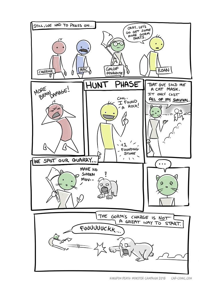 First Previous Random Next Last | 1 Share You are currently browsing the archive for Silly First Previous Archive Random Next Last | 1 Share Tweet 24 January 2018 Kingdom Death Campaign, p7 January 17, 2018 by Tim Subscribe Notify of new follow-up comments new replies to my comments Label {} [+] Name* Email* Δ Label {} [+] Name* Email* Δ 1 Comment Oldest Newest Most Voted Inline Feedbacks View all comments Somewhere 7 years ago “Where is your survival” “I got a cat mask” “Why did you get a cat mask” “It looked nice.”
