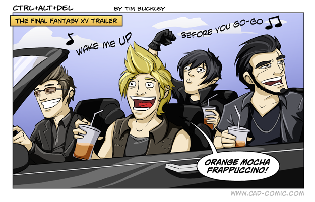 First Previous Random Next Last | 5 Share You are currently browsing the archive for Ctrl Alt Del First Previous Archive Random Next Last | 5 Share Tweet 24 Jitterbug September 22, 2014 by Tim Subscribe Notify of new follow-up comments new replies to my comments Label {} [+] Name* Email* Δ Label {} [+] Name* Email* Δ 5 Comments Oldest Newest Most Voted Inline Feedbacks View all comments Urzole_Narx 8 years ago Pumpkin spice latte cappuccino. Him. 7 years ago I would have preferred a nice round of Johnny C. Bad, but this works too Mr_Materia 7 years ago Waaaiiiiit a minute…..Gladio wearing an over shirt AND an undershirt? What madness is this?! Griever 7 years ago New FFXV DLC: Prompto with a selfie stick! No wait! A Prompto/Fatal Frame crossover event! I’d totally throw money at that story arc. BlookyGhostDJ 4 years ago *I played this, tim… It’s not that stupid. thanks…I hate it.